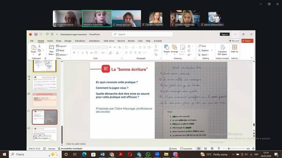 Вона поділилася з присутніми враженнями від знайомства з особливостями оцінювання учнів у Франції.